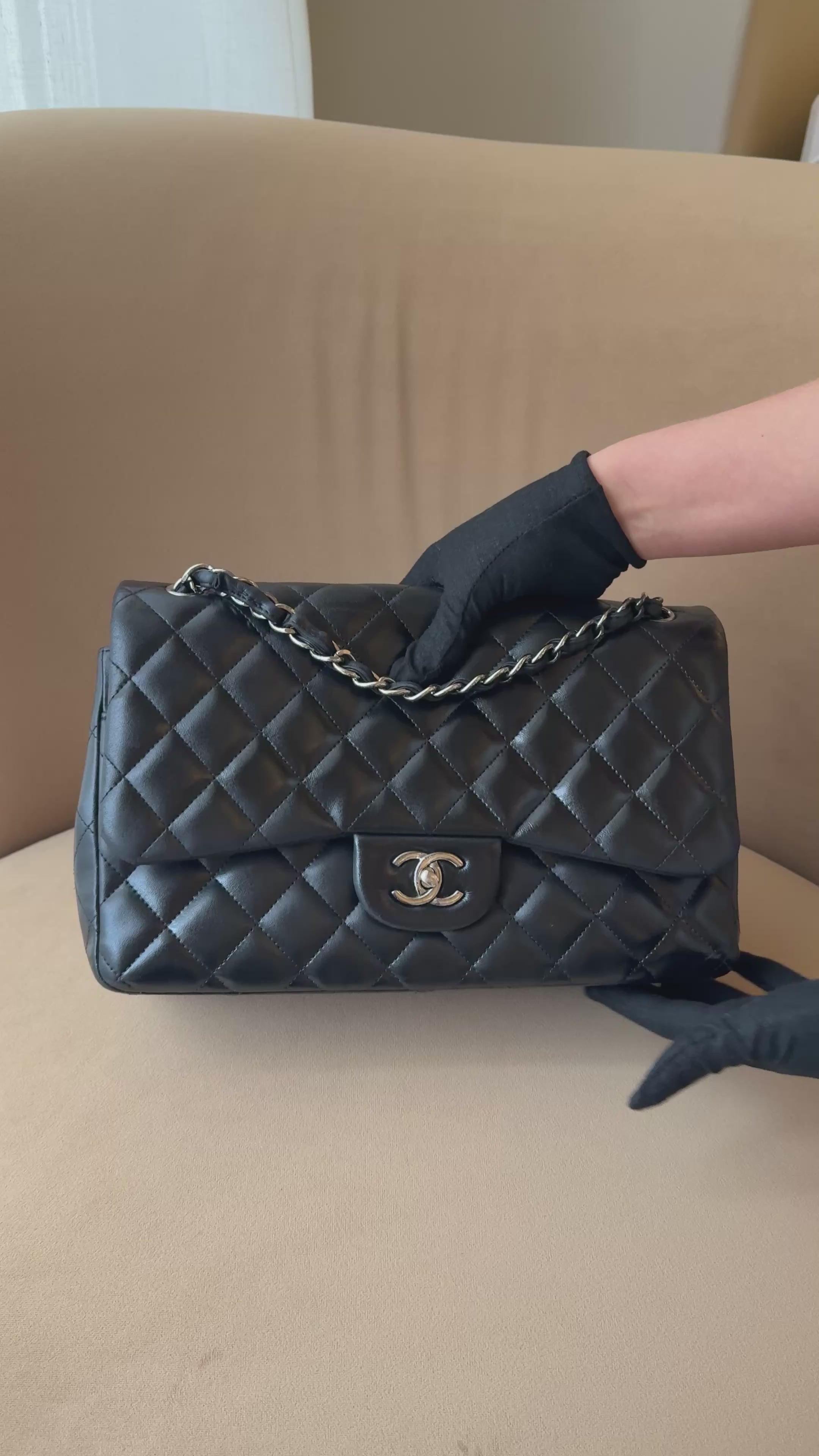 Chanel Jumbo Classic Flap Bag In Black Lambskin Leather With Silver Hardware