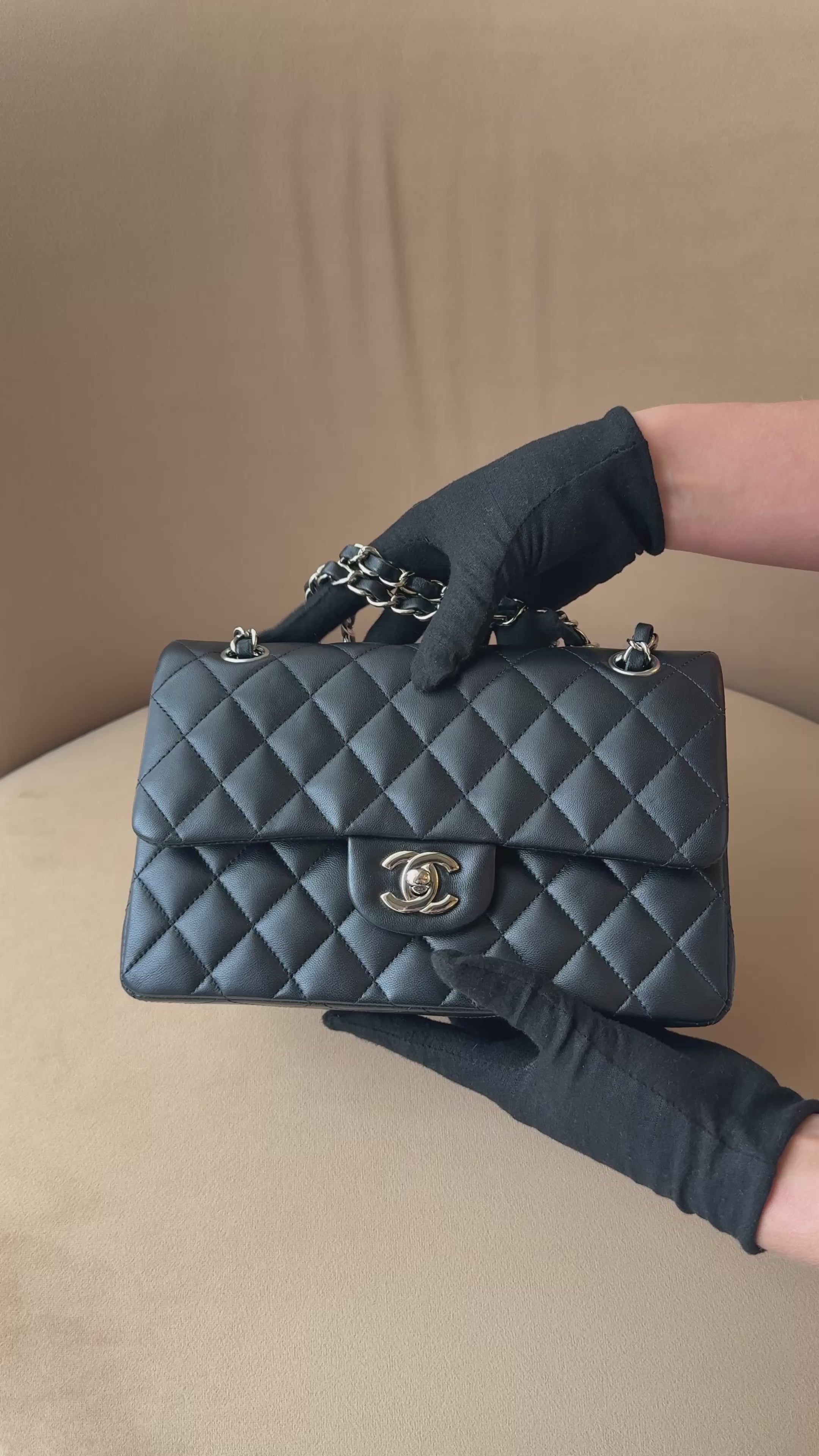 Chanel Small Classic Double Flap In Black Lambskin Leather With Silver Hardware