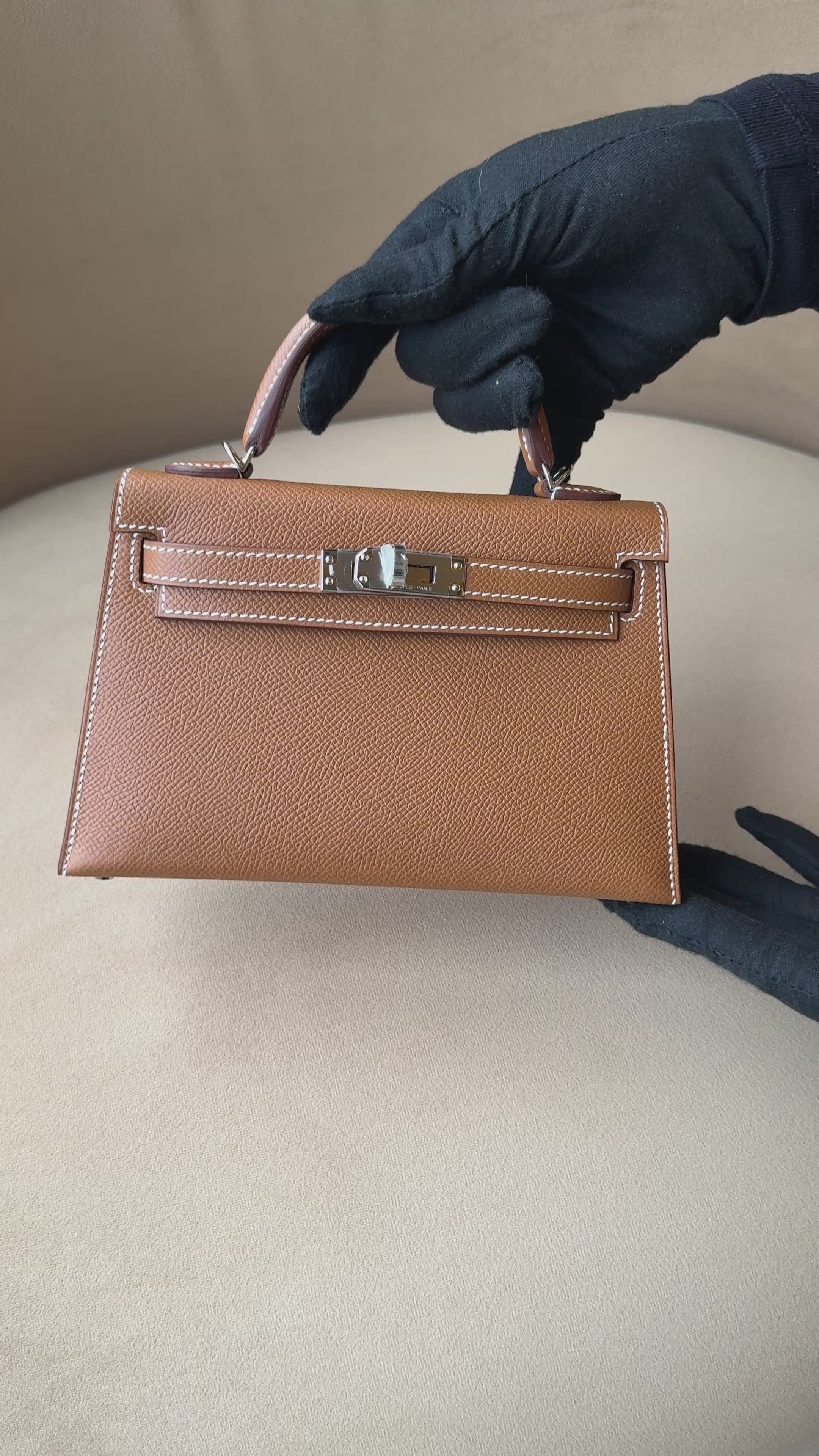RARE - The Hermès Mini Kelly Sellier in Gold Epsom leather is the epitome of timeless sophistication. Expertly crafted with the iconic Sellier construction, this coveted silhouette showcases sharp, structured lines that highlight the bag’s impeccable craftsmanship. The warm Gold hue is beautifully complemented by cool palladium hardware, creating a classic yet striking contrast. Made from durable Epsom leather, the bag maintains its elegant shape while offering a refined, lightweight feel. Finished with the signature Kelly turn-lock closure, this Mini Kelly is a true collector’s piece—effortlessly chic, endlessly versatile, and unmistakably Hermès. An extremely rare and highly sought after piece.