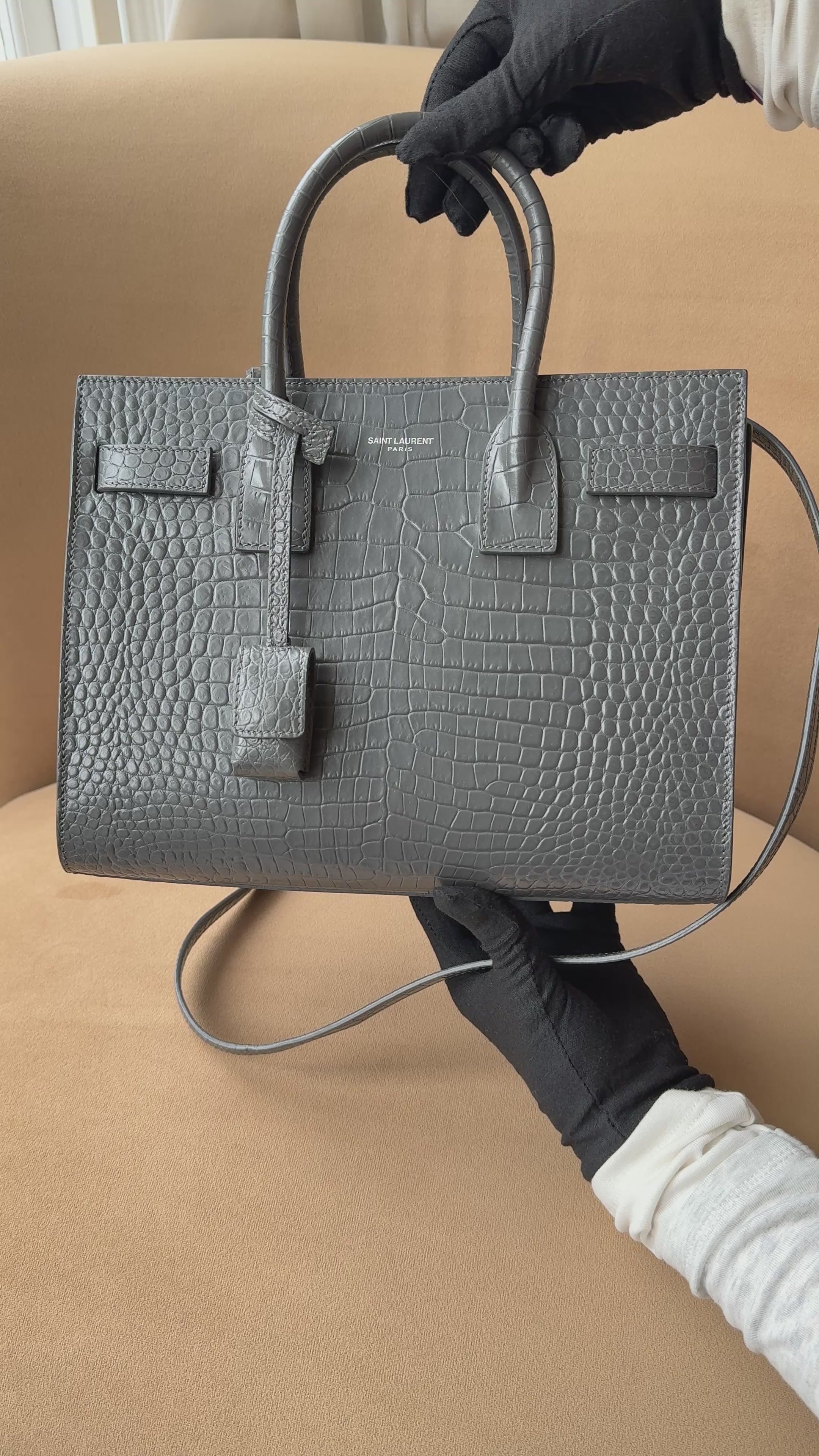 Saint Laurent Small Sac De Jour In Grey Croc Embossed Leather With SHW